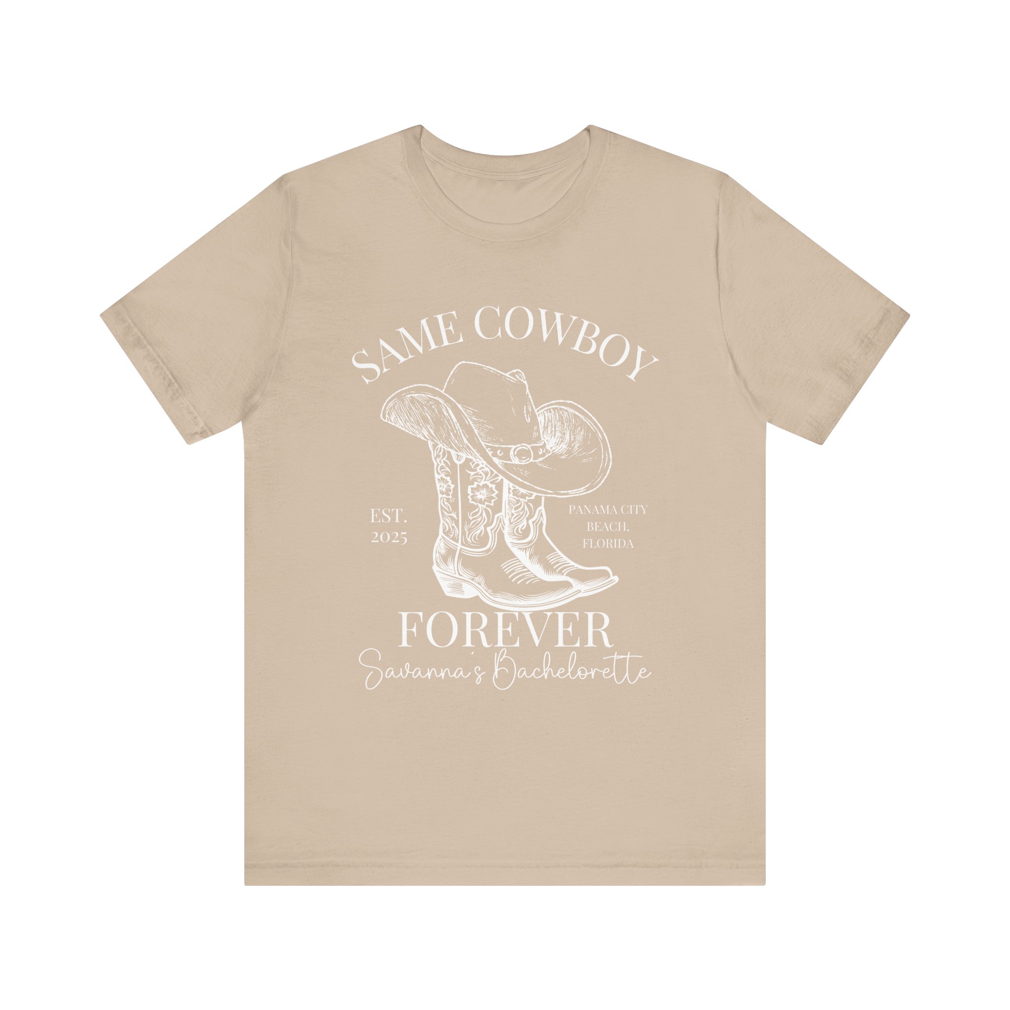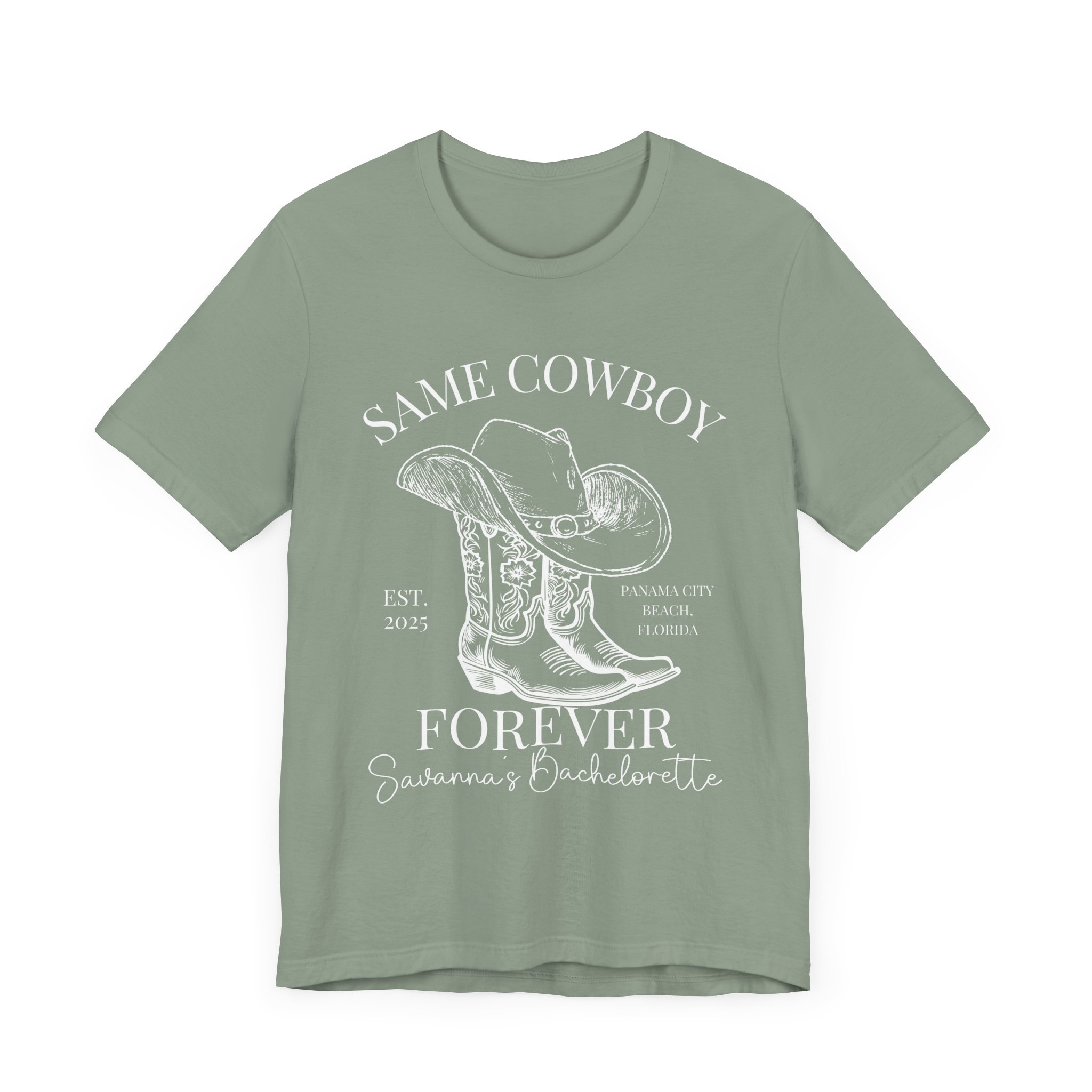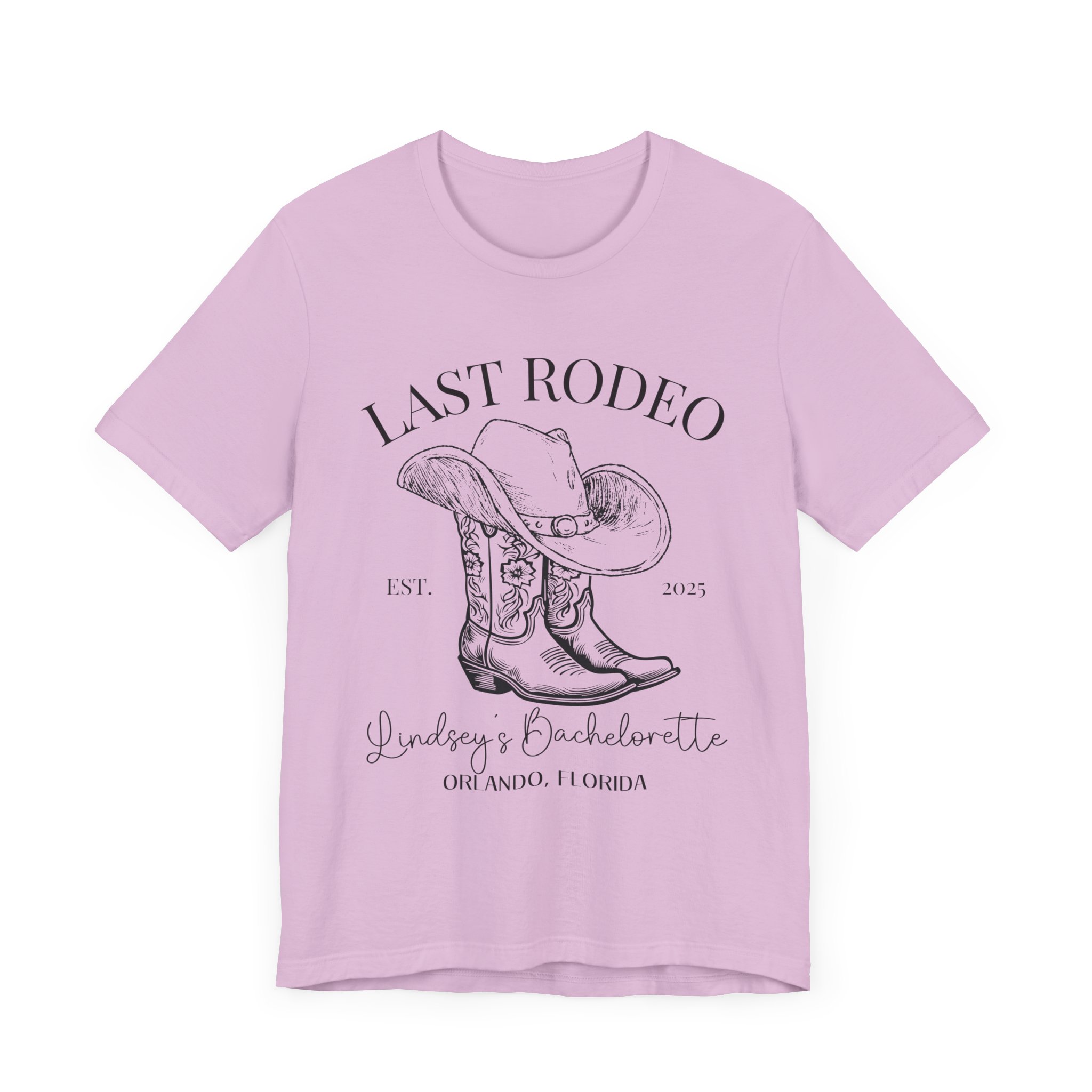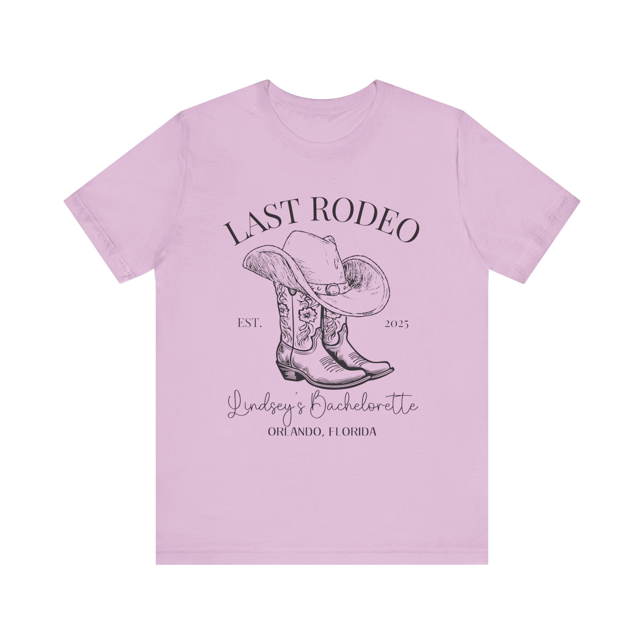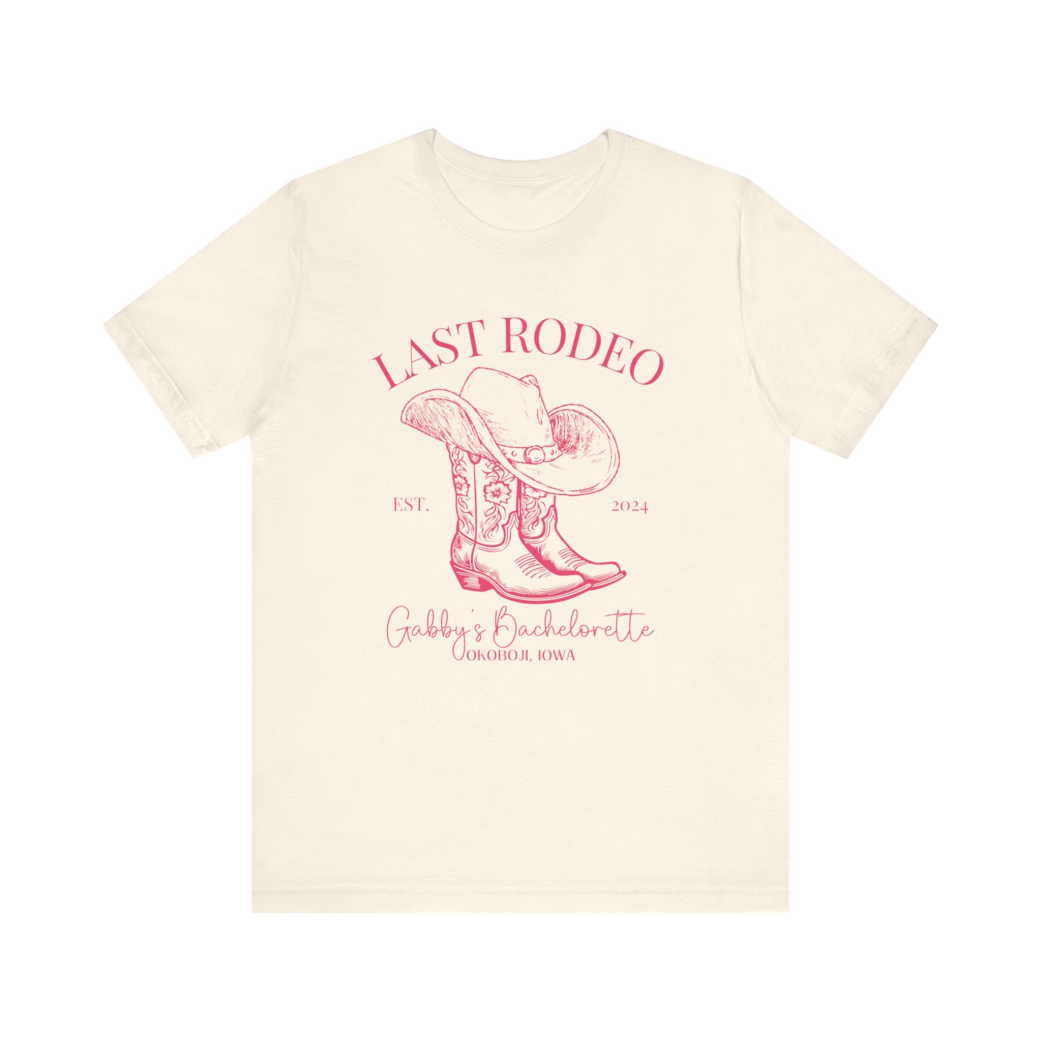 Custom Western bachelorette T-shirt perfect for a Last Rodeo themed party. Made with lightweight, breathable fabric, this shirt is ideal for active and leisure wear. The retail fit and classic crew neckline make it suitable for casual and semi-formal settings. Relevant for bachelorette parties, bridal parties, Western-themed celebrations.
